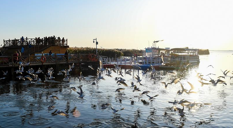 居延海位于內蒙古阿拉善盟額濟納旗北部,是我國第二大內陸河黑河的尾閭湖。其形狀狹長彎曲,猶如新月,額濟納河匯入湖中。