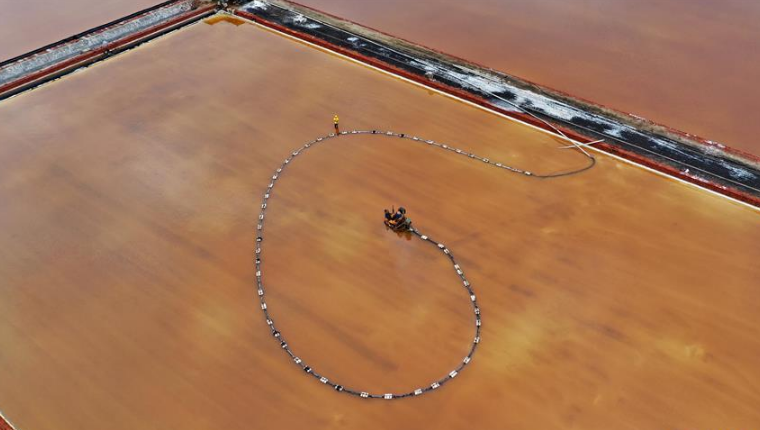 2019年7月9日,漁民們在江蘇連云港沿海地區(qū)海邊的灘涂上將剛收獲的海蟶運(yùn)送上岸裝箱外運(yùn)。