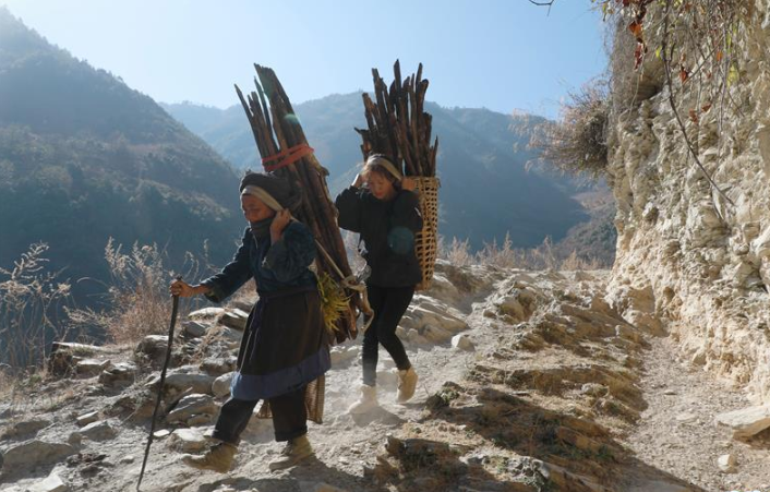 余永妹肩上扛著的,是捆捆木柴,更是對這個家庭的一份責(zé)任。余永妹生活在云南省怒江傈僳族自治州蘭坪縣兔峨鄉(xiāng)扎局村雙麥地小組。