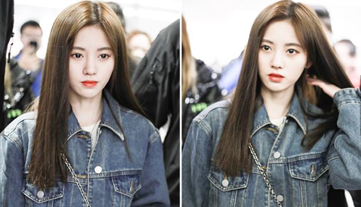 她扎著雙馬尾甜美可愛似少女,穿oversized的牛仔外套和寬大T恤,戴著防曬的護(hù)袖,身材十分纖細(xì)苗條。