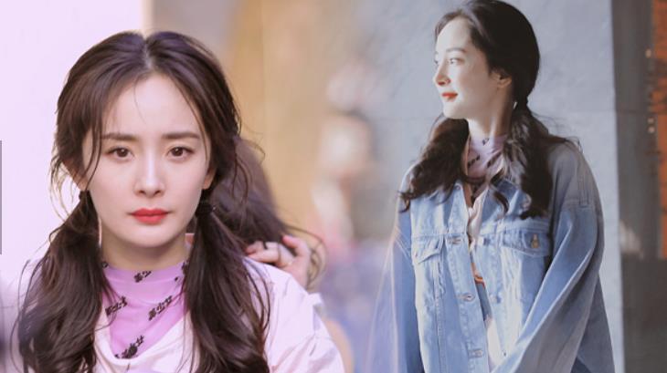 楊冪穿粉衣扎雙馬尾甜美可愛 身材纖細(xì)元氣滿滿