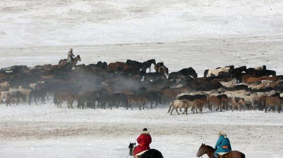 1月21日,錫林郭勒2018冰雪那達(dá)慕舉行。牧場進(jìn)行了馴馬、套馬等傳統(tǒng)馬術(shù)運(yùn)動表演。