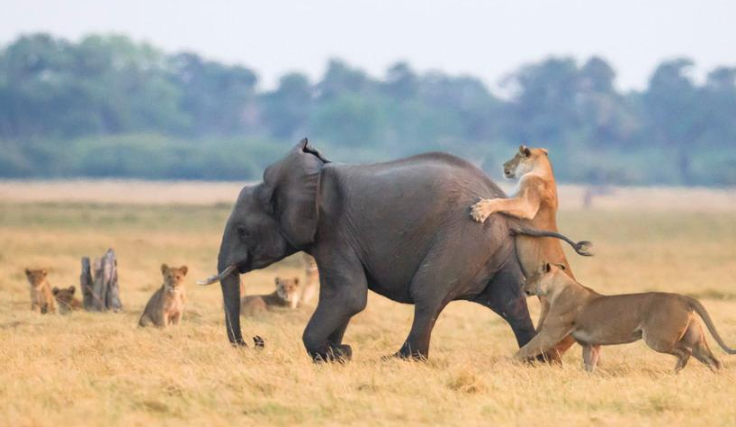 英國(guó)攝影師詹姆斯(James Gifford)在博茨瓦納喬貝國(guó)家公園拍到一群獅子獵食大象的精彩畫(huà)面。