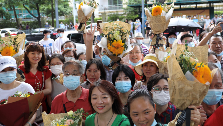 7月7日,在山西省太原市第五中學(xué)校考點(diǎn),結(jié)束首場(chǎng)科目考試的考生走出考場(chǎng)。