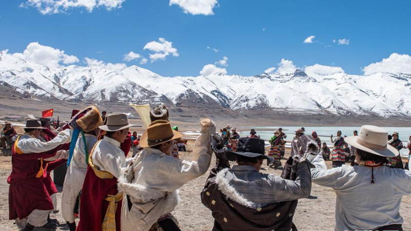 5月8日,一群巖羊在珠峰大本營(yíng)周?chē)捠常S嘴山鴉飛到巖羊身上停留,構(gòu)成一幅幅生動(dòng)有趣的雪域圖畫(huà)。