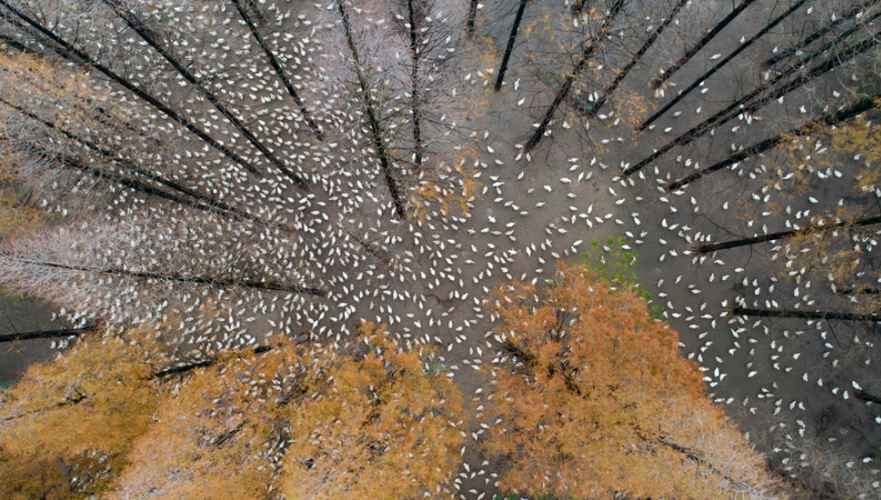 江蘇泗洪5000多只鵝林場(chǎng)吃食 場(chǎng)面壯觀