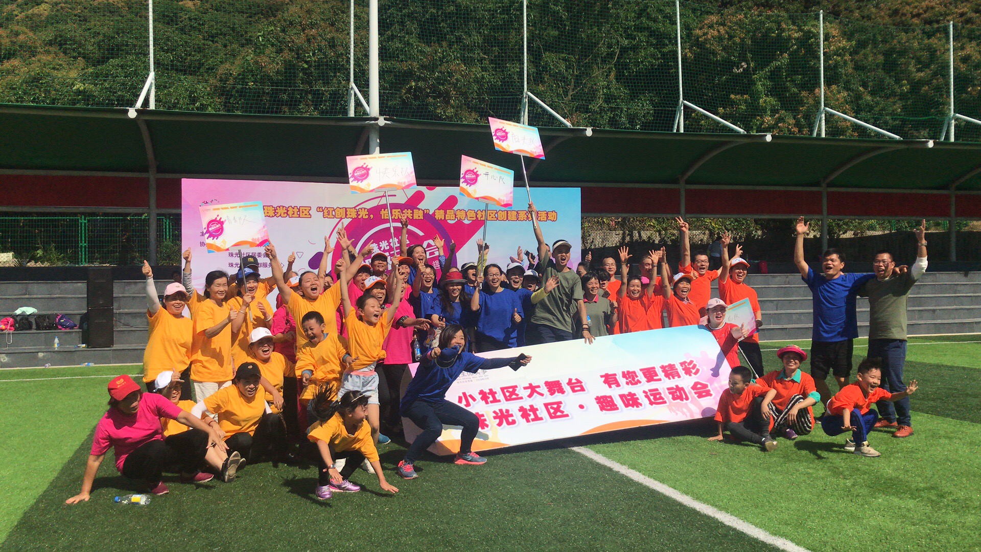 深圳新聞網(wǎng)訊 這個(gè)周末在南山桃源街道的珠光社區(qū)足球場(chǎng)變成五彩繽紛歡樂的海洋了,因?yàn)轭伾?,因?yàn)榧饨校驗(yàn)榧で?,因?yàn)槿の哆\(yùn)動(dòng)會(huì)開始了!