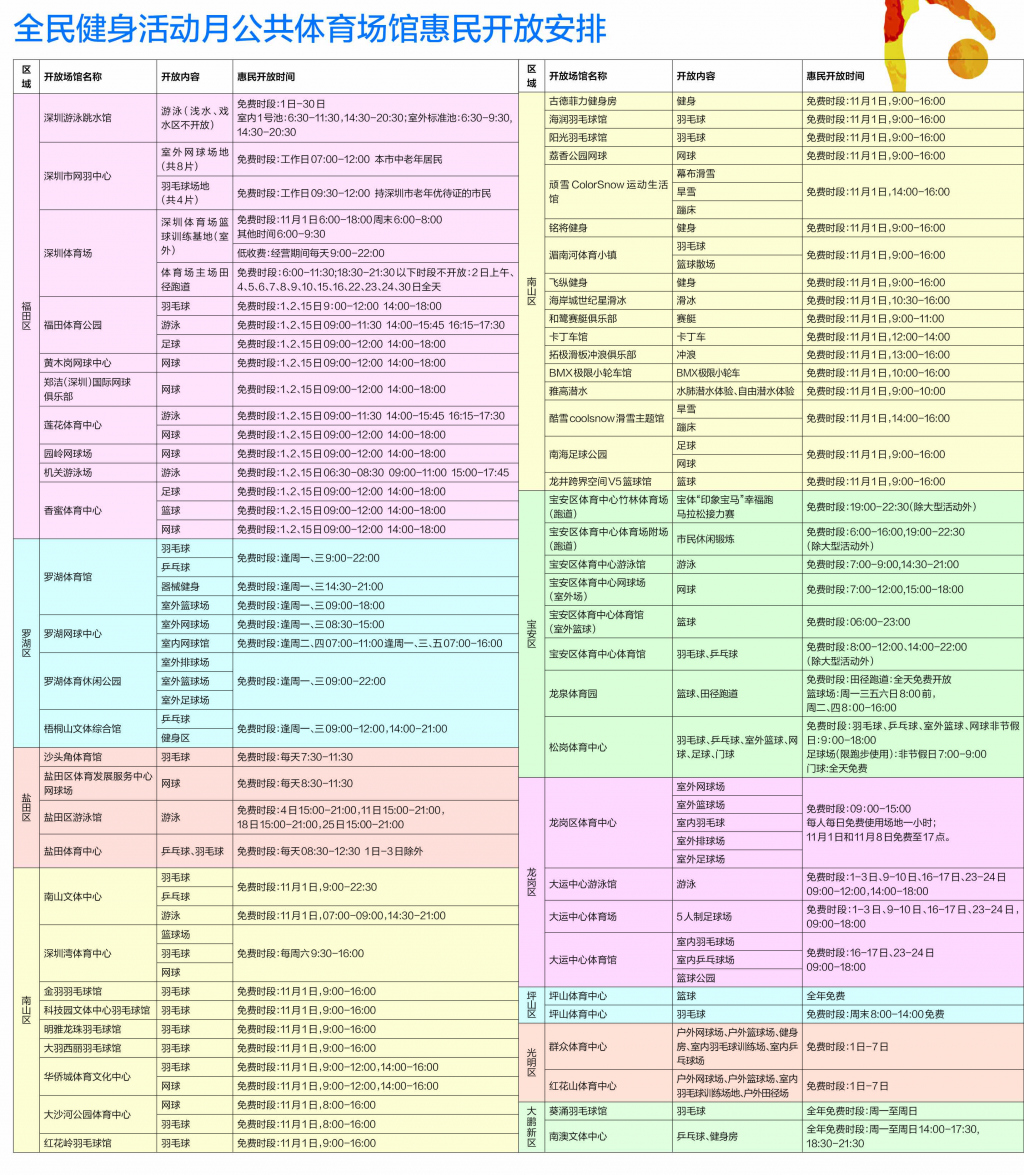 全市各區(qū)的公共體育場館、體育設(shè)施和學(xué)校體育場地也將免費(fèi)或優(yōu)惠向市民開放,以滿足廣大群眾的健身需求,豐富群眾體育文化生活,吸引更多人群參加健身活動。值得注意的是,在今年免費(fèi)開放的體育場館中,不但有市區(qū)級建設(shè)的大型體育中心、體育館,更有如機(jī)關(guān)游泳館、華僑城體育中心、古德菲力健身房等幾十余家社會體育場館,政府主導(dǎo),社會力量融入,全民健身范圍得以大幅擴(kuò)大。