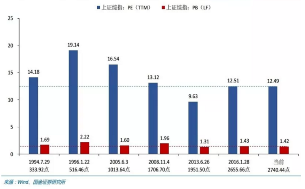 估值處于歷史第二底部:除上證A股外,其他板塊估值全面低于2014年低點(diǎn),深證A股和中小板幾乎與2012年12月份的低點(diǎn)持平。對(duì)比上證綜指歷次歷史大底的市盈率和市凈率來(lái)看,當(dāng)前估值僅略高于2013年1951點(diǎn)的時(shí)候,在7次歷史大底中位列倒數(shù)第二。