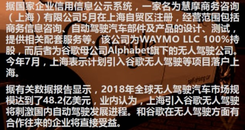 谷歌母公司Alphabet旗下研究自動駕駛的部門Waymo在自動駕駛領(lǐng)域處于全球領(lǐng)先水平,當(dāng)前其已經(jīng)完成800萬英里(約1287萬公里)自動駕駛汽車公共道路測試,模擬測試里程達到50億英里(約80.47億公里)。Waymo計劃在為今年下半年向部分地區(qū)的美國消費者推出無人駕駛服務(wù)。