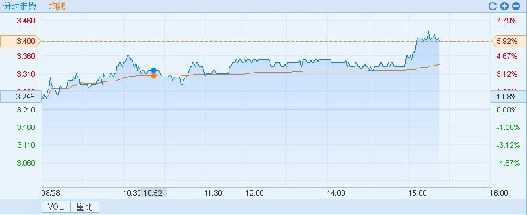 智通財(cái)經(jīng)APP獲悉,中國鋁業(yè)(02600)設(shè)定部分產(chǎn)品最低限價(jià),受此影響,股價(jià)上揚(yáng),截至15時(shí)20分,漲6.23%,報(bào)價(jià)3.40港元,成交額1.45億。