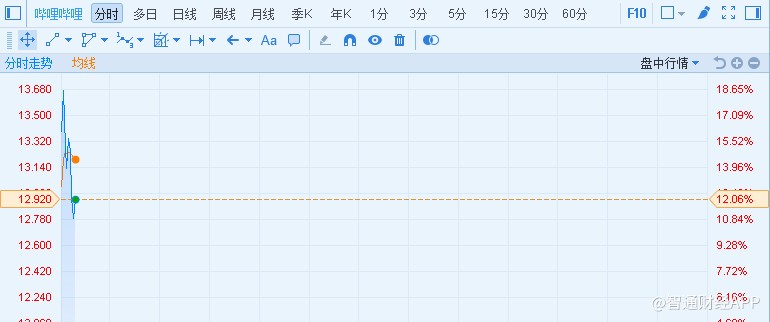 B站開(kāi)盤漲超18%,現(xiàn)報(bào)12.92美元,漲12.06%。