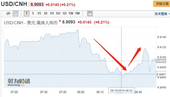 智通財經(jīng)APP獲悉,離岸人民幣兌美元亞市早盤一度跌逾200點,報6.9155,后短線快速拉升約50點。截至發(fā)稿,報6.9093,跌143點子,跌幅0.21%。