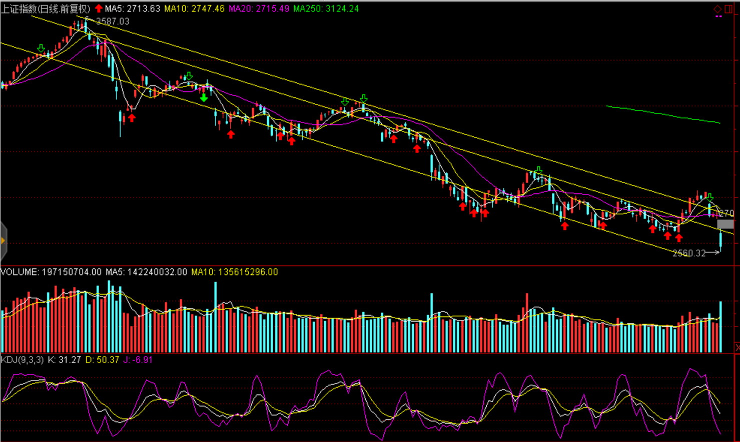 周四兩市股指大幅跳空低開震蕩走低,各大股指均創(chuàng)出2年半以來單日最大跌幅。上證綜指收跌5.22%報(bào)2583.46點(diǎn),深證成指跌6.07%報(bào)7524.09點(diǎn),創(chuàng)業(yè)板指跌6.3%報(bào)1261.88點(diǎn)。兩市放量成交3586.21億元,環(huán)比大幅增加1225億元,創(chuàng)近兩個(gè)月新高。盤面看僅有西藏、天然氣及人民幣貶值板塊有所上漲外全盤皆綠,市場(chǎng)普跌,超過1000家公司跌停。