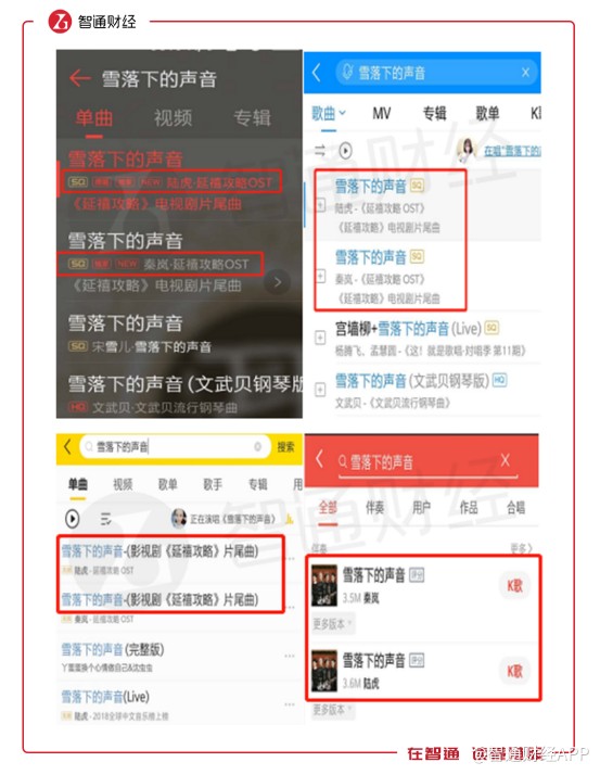 以此前熱播劇《延禧攻略》的片尾曲《雪落下的聲音》為例。這首歌的版權(quán)由QQ音樂(lè)獨(dú)家擁有,并在APP中擁有“獨(dú)家”的標(biāo)識(shí)。但實(shí)際上,該歌曲在酷狗音樂(lè)、酷我音樂(lè)和全民K歌上同樣可以播放,可以說(shuō)騰訊音樂(lè)版權(quán)在公司旗下4個(gè)產(chǎn)品是通用的。