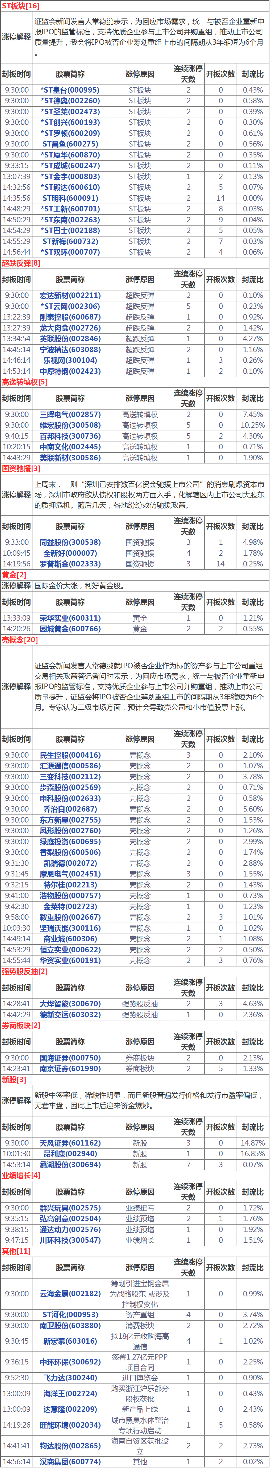 今天漲停家數(shù)較上一交易日有所減少,兩市76家漲停;跌停13家。成交量方面,滬市成交1669億元,深市成交1907億元,兩市總成交額約為3576元,較上一交易日縮量664億元。盤面上,ST板塊、黃金、證券等板塊領漲;白酒、分散染料、國產(chǎn)軟件、粵港澳大灣區(qū)等板塊領跌。