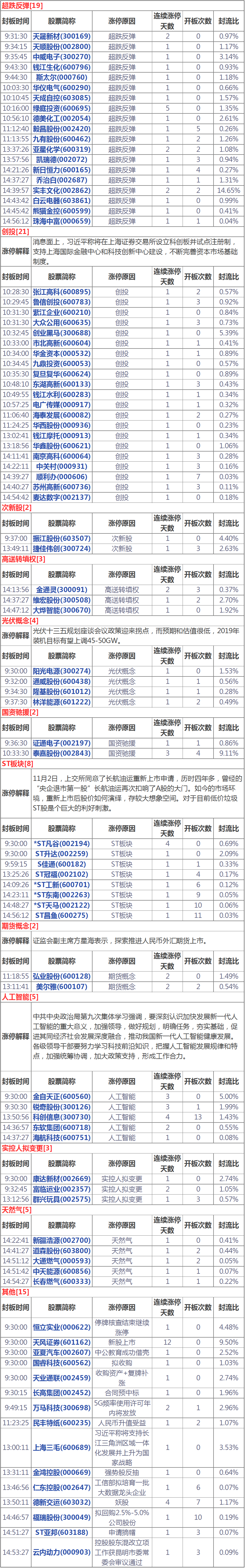 漲停分析:創(chuàng)投板塊掀漲停潮超跌個股集體反彈(11月5日)