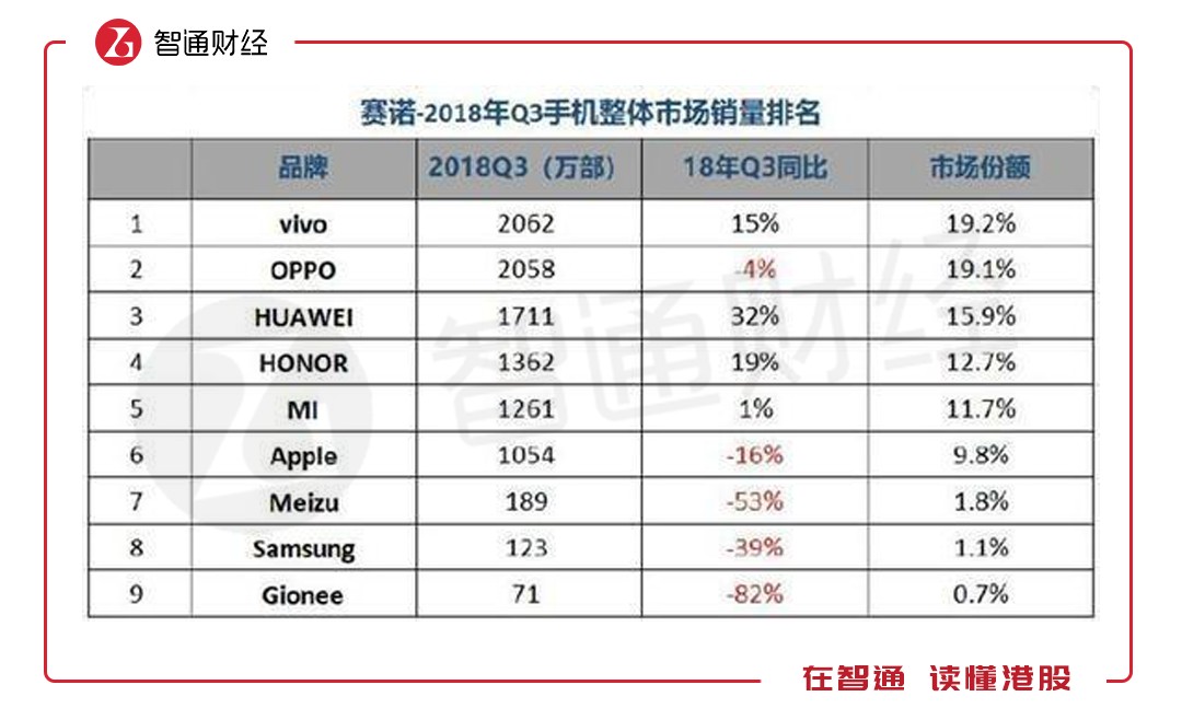 華為、小米、OPPO及Vivo四大品牌在全球逐漸吞沒其他知名品牌的市場份額,而在中國市場基本戰(zhàn)領了所有的市場份額,根據(jù)數(shù)據(jù)統(tǒng)計公司Counterpoint數(shù)據(jù),2018年Q3,上述四大品牌市場占有率近80%。包括蘋果、摩托羅拉及三星等國外知名品牌,以及魅族、朵唯和中興等其他眾多國內品牌,爭奪剩下20%的市場份額,競爭以及生存環(huán)境十分殘酷。
