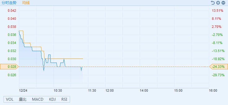 香港生命科學(08085)面臨出牌,股價重挫,截至11時18分,跌24.32%,報價0.028港元,成交額78.43萬。