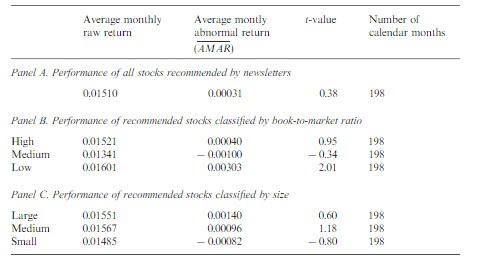 此外,美國學(xué)者Jaffe和Mahoney在1999年的一篇學(xué)術(shù)論文《The performance of investment newsletters》中,對(duì)1980-1996年間的近100份投資預(yù)測(cè)的系統(tǒng)性分析后得出結(jié)論,稱這些投資建議的回報(bào)還不及它們所對(duì)應(yīng)的比較基準(zhǔn)。也就是說,這些專家提供的薦股服務(wù)的價(jià)值為零。