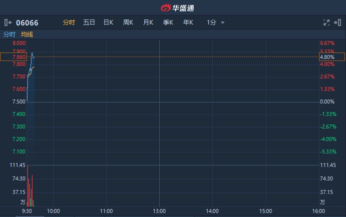 智通財(cái)經(jīng)APP獲悉,中信建投(06066)A股早盤打開(kāi)漲停后又快速封板,H股跟隨上漲,截至9時(shí)37分,漲4.8%,報(bào)7.86港元,成交額額達(dá)3681萬(wàn)港元。(閔釧)