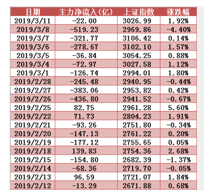 近20個(gè)交易日兩市主力資金凈流入額變動(dòng)圖表,連續(xù)10日資金凈流出;