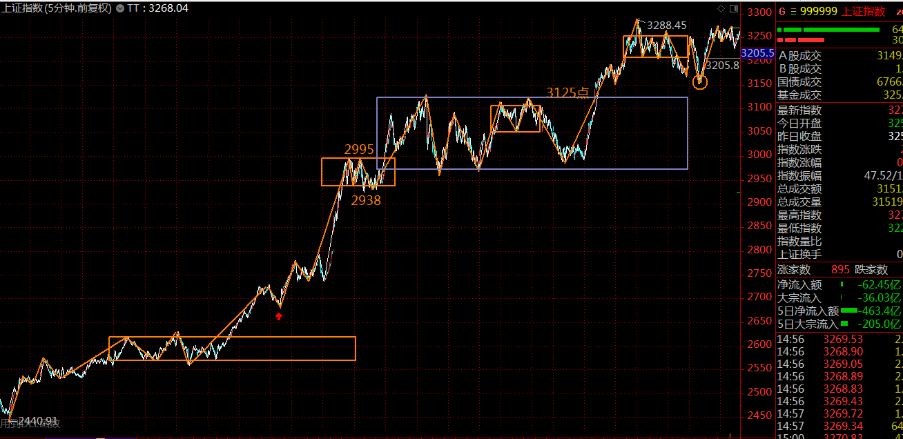 上證指數(shù)依然相對強(qiáng)勢,可以看到,周二的恐慌低點(diǎn)正好對應(yīng)了30分鐘的第三類買點(diǎn),后續(xù)在前高位置止步不前需引起注意,這里已進(jìn)入了背馳段,如若周一不能強(qiáng)勢拉起,則需謹(jǐn)防大盤這波春季上漲趨勢終結(jié)的風(fēng)險。