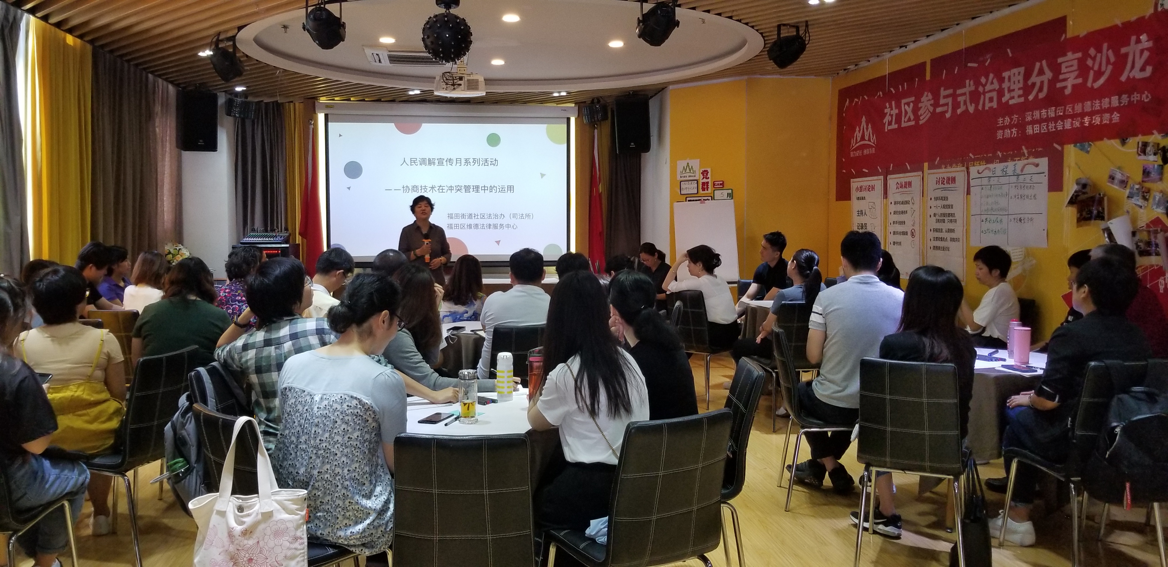 5月15-16日,由“福田區(qū)社會(huì)建設(shè)專項(xiàng)資金”資助的社區(qū)議事能力建設(shè)項(xiàng)目在福田區(qū)福田街道“白領(lǐng)e家”開展,來自福田區(qū)各個(gè)社區(qū)的人民調(diào)解員、社區(qū)法律顧問、社會(huì)工作者以及深圳市福田區(qū)維德法律服務(wù)中心邀請(qǐng)的志愿律師等80余人次參與了本次“社區(qū)參與式治理分享沙龍”。福田區(qū)街道黨委副書記、人大工委主任劉原鑣、深圳市福田區(qū)維德法律服務(wù)中心執(zhí)行主任李嚴(yán)出席了分享沙龍啟動(dòng)儀式。