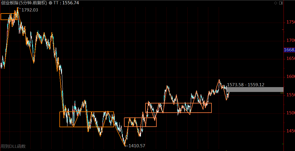 創(chuàng)業(yè)板這里仍然走的較為強勢,需要關注1530點的支撐,只要不跌回下方的三十分鐘中樞,都可視作是在構建第三類買點。結合滬指的情況來說,這里盤整背馳的概率更大,預期在下周初反彈后,創(chuàng)業(yè)板指數(shù)將會跌回三十分鐘中樞區(qū)間。