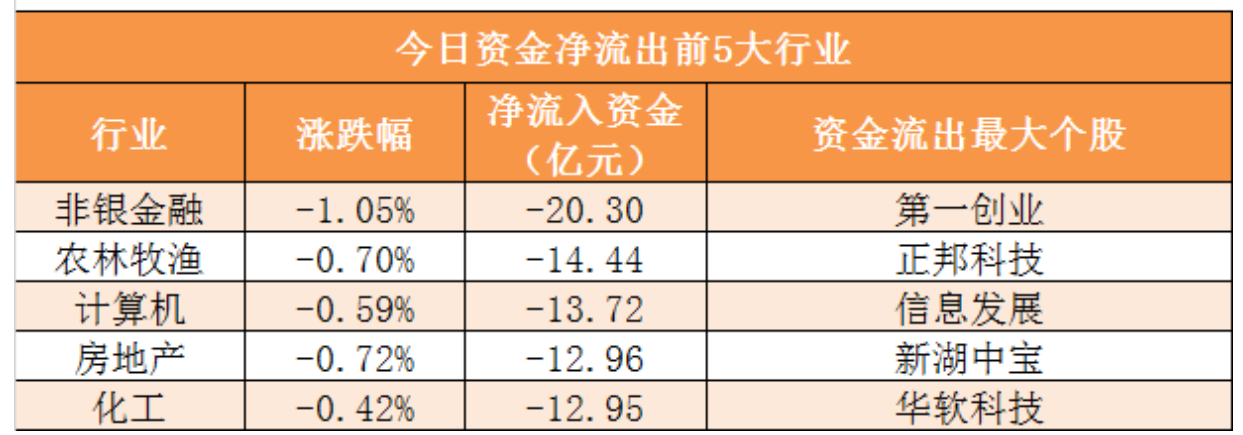 資金流向:28個(gè)申萬(wàn)一級(jí)行業(yè)中,4個(gè)行業(yè)實(shí)現(xiàn)資金凈流入,其中電子行業(yè)凈流入42.79億元居首。
