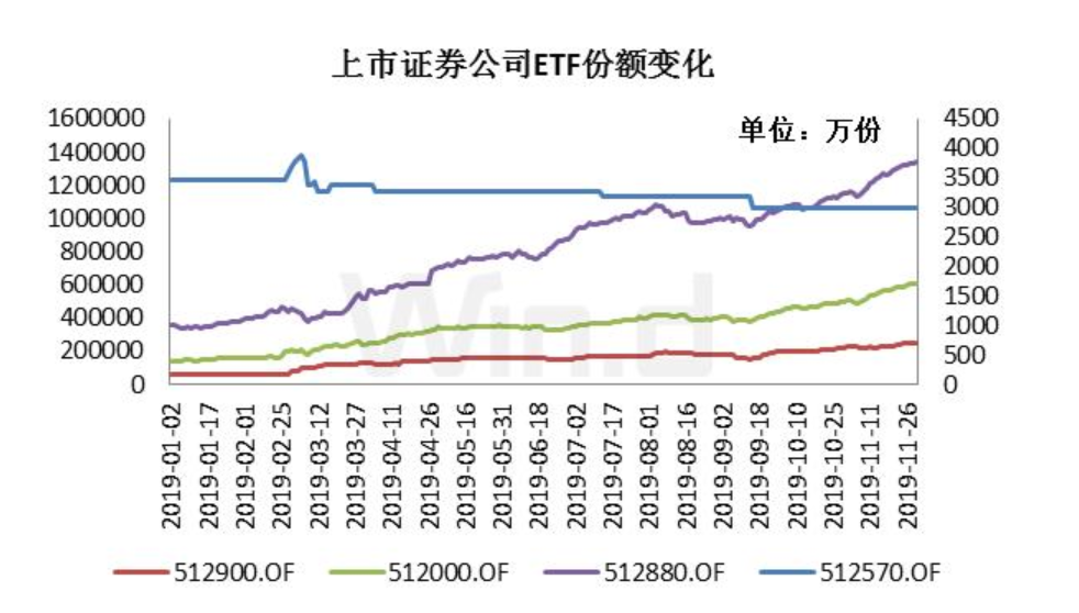 三季度以來,資金持續(xù)流入證券公司ETF,國泰中證全指證券公司ETF、華寶中證全指證券ETF和南方中證全指證券公司ETF的份額也未停止增長。