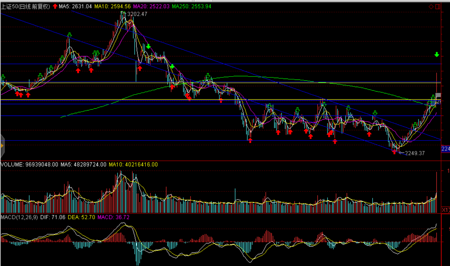 周一兩市強勢上揚,三大股指均以大陽報收。兩市巨量成交1.04萬億元,環(huán)比大幅增加4182億元。