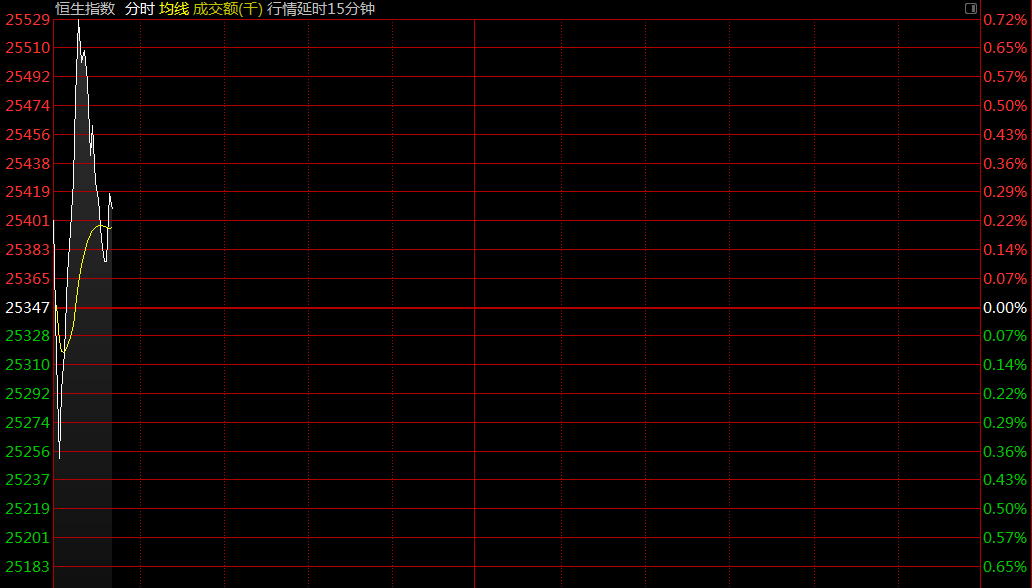 智通財(cái)經(jīng)APP獲悉,昨日恒指收跌800點(diǎn)。恒生指數(shù)開盤漲0.22%,報(bào)25401.17點(diǎn)。國企指數(shù)漲0.01%,報(bào)10235.9點(diǎn)。紅籌指數(shù)跌0.09%,報(bào)4107.59點(diǎn)。大市盤前成交16.67億港元。