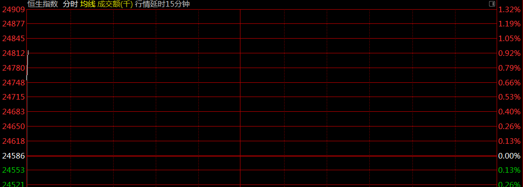 恒生指數(shù)開盤漲0.96%,報(bào)24955.79點(diǎn)。國企指數(shù)漲1.01%,報(bào)10159.89點(diǎn)。紅籌指數(shù)漲0.69%,報(bào)4083.05點(diǎn)。大市盤前成交18.45億港元。