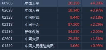 高盛指內險股估值吸引吁買入 中國太平升逾4%領漲板塊