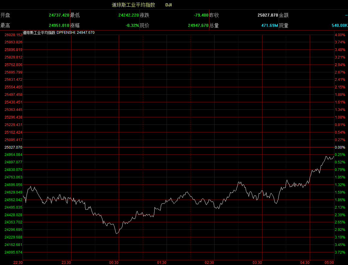美股先跌后回升蘋果(AAPL.US)一度跌約3%后收漲
