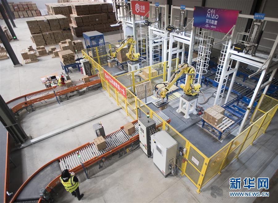 ??? 近日,在菜鳥網(wǎng)絡(luò)武漢黃陂物流倉內(nèi),一組機械臂在進(jìn)行搬運作業(yè)。近日,菜鳥網(wǎng)絡(luò)在湖北武漢黃陂物流倉庫啟用智能機械臂來搬運商品。據(jù)介紹,每組機械臂一個小時能搬運1000件商品,可以24小時不間斷作業(yè)。這些機械臂的投入,有助于緩解高峰期貨物處理壓力,提高發(fā)貨速度,被工程師親切地稱為“麒麟臂”。新華社記者肖藝九攝
