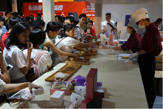 記者在快閃店的手工烘焙區(qū)看到了一塊塊手工鳳梨酥精心制作的全過(guò)程。隨著它的“出爐”,濃郁香味吸引來(lái)了不少市民圍觀。在試吃區(qū)里,市民品嘗后都紛紛贊不絕口,“好吃,真的好吃,餡料也很足!”除此之外,店內(nèi)還設(shè)置了愛(ài)的溫度、娃娃機(jī)、顏值打折AI人臉識(shí)別游戲等互動(dòng)活動(dòng),也吸引了眾多市民的熱情參與和圍觀。