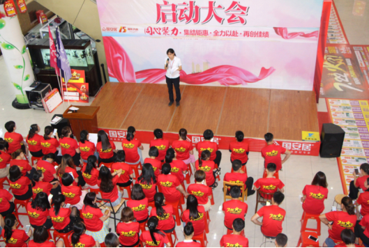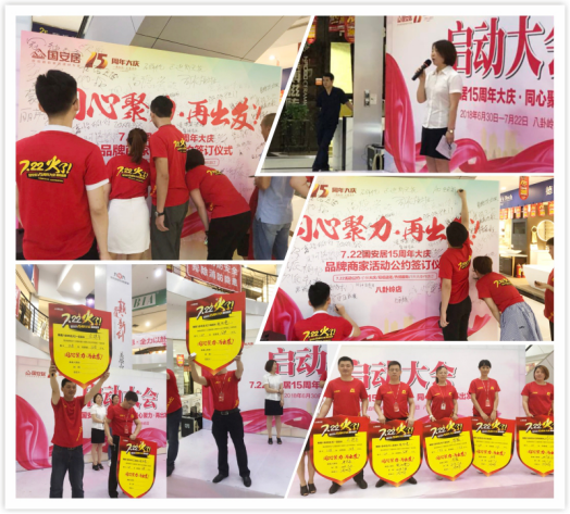 7月3日下午,紅色的T恤覆蓋了國安居各店商場,“7.22國安居15周年大慶”啟動大會在國安居各店正式落下帷幕。為確保全員工作執(zhí)行到位,運行流暢,國安居各店店總及各店策劃負(fù)責(zé)人,先后做了本次大慶企劃活動及推廣執(zhí)行方案的細(xì)致說明,各店參會的商戶老板、銷售精英及國安居員工對此次活動的推廣形式與方向感到更加明確了,對于此次大慶活動的開展更是充滿了期待與信心。
