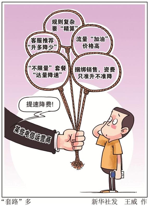 套路五:捆綁銷(xiāo)售,資費(fèi)只準(zhǔn)升不準(zhǔn)降。許多消費(fèi)者在辦理手機(jī)套餐時(shí),運(yùn)營(yíng)商會(huì)贈(zèng)送寬帶服務(wù),二者資費(fèi)不能單獨(dú)改動(dòng)。深圳王女士去年辦理了某運(yùn)營(yíng)商的“136元贈(zèng)送寬帶”的電信套餐,但套餐內(nèi)流量只有1GB,且不能更換成其他流量資費(fèi)優(yōu)惠的套餐;如果超流量就必須支付30元1GB的“流量包”。王女士每月實(shí)際通訊費(fèi)超過(guò)170元。