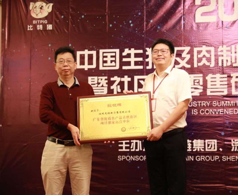 龍鏈集團董事局主席、川豬集團董事長、深圳龍鏈新零售有限公司董事長夏可,上臺接受了這項全廣東省獨家的授權(quán)牌,并發(fā)表感言:這既是廣東省委、省政府對深圳龍鏈新零售有限公司以區(qū)塊鏈、人工智能、物聯(lián)網(wǎng)等領域的高新科技,打造形成了生豬及肉制品等高品質(zhì)“菜籃子工程”系列產(chǎn)品的規(guī)?;?、專業(yè)化產(chǎn)供銷及商業(yè)平臺服務“一條龍”的肯定,也是一種鞭策——鞭策龍鏈人將自創(chuàng)的“比特豬”品牌穩(wěn)固為中國高端健康食品結(jié)合社區(qū)新零售領域的第一品牌,并不斷推動市民能夠以更便捷的方式與更良好的消費體驗,獲得高品質(zhì)的放心食品。