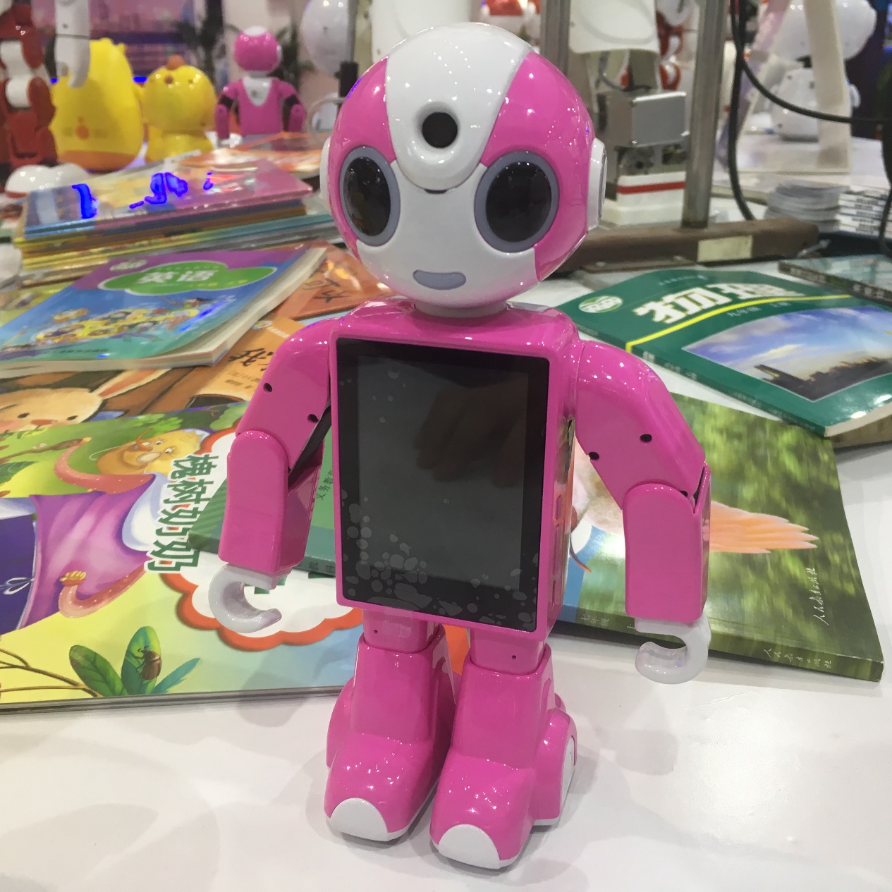 人形智能機(jī)器人小E。唱得了歌,跳得了舞,聊得了天,打得了拳,可以聲控控制家電,安防監(jiān)護(hù)家庭,視頻通話聊天,百科知識(shí)學(xué)習(xí),APP控制、3D可視化動(dòng)作編程等功能。