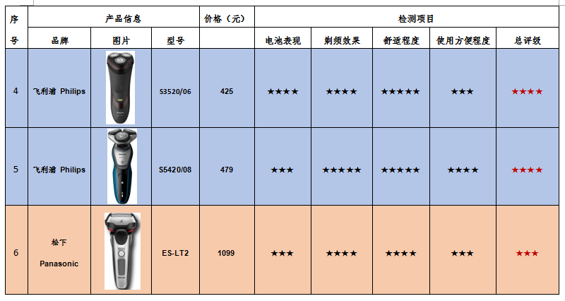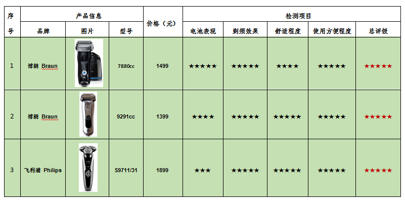附:ICRT電動(dòng)剃須刀比較試驗(yàn)產(chǎn)品信息及綜合評(píng)級(jí)表