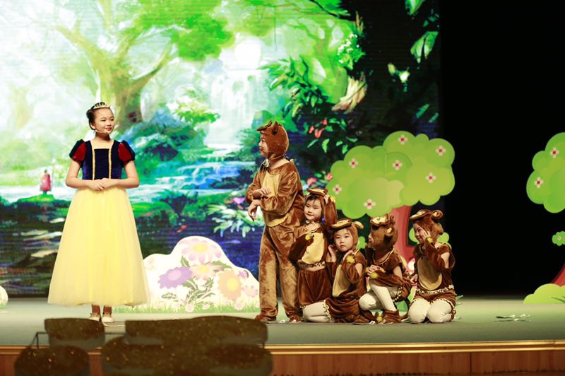 現(xiàn)場表演精彩紛呈,內(nèi)容積極向上,形式豐富多彩,表演生動逼真,充分展示出選手們奮發(fā)向上的精神風(fēng)貌,同時也展現(xiàn)了選手們的外語實際運用能力和自主創(chuàng)新精神。《三打白骨精》、《睡美人》、《冰河世紀》、《獅子王》、《皇帝的新裝》、《白雪公主和七個小矮人》、《小紅帽》、《馬良的神筆》……一個個經(jīng)典的童話故事,惟妙惟肖的表演,生動的詮釋著故事里的每一個角色,把觀眾帶入一個個美麗的童話世界。