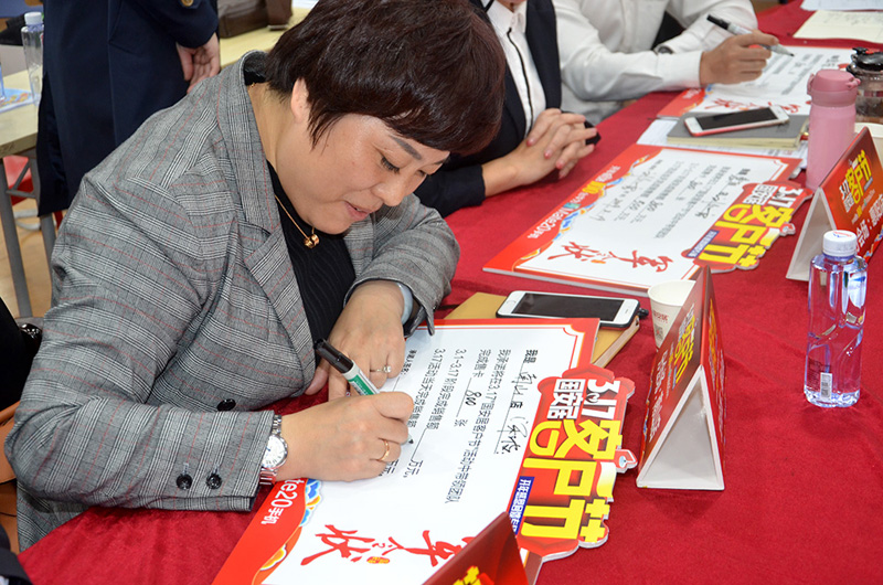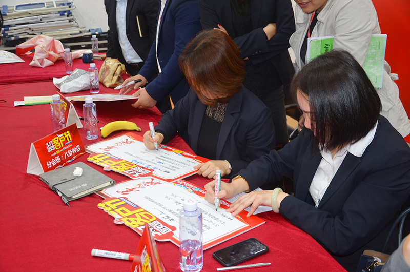 本次活動(dòng)深惠七店總紛紛發(fā)言表決心,承諾勢(shì)必將全力以赴辦好開年第一場萬人團(tuán)裝會(huì),給消費(fèi)者帶來更多的優(yōu)惠,提供更貼心的服務(wù),并在全員的見證下,簽訂了任務(wù)軍令狀。目標(biāo)已定,勢(shì)必達(dá)成。國安居的家人們用最飽滿的熱情,最熱血的狀態(tài)努力拼搏,確?!?·17客戶節(jié)”活動(dòng)圓滿成功。