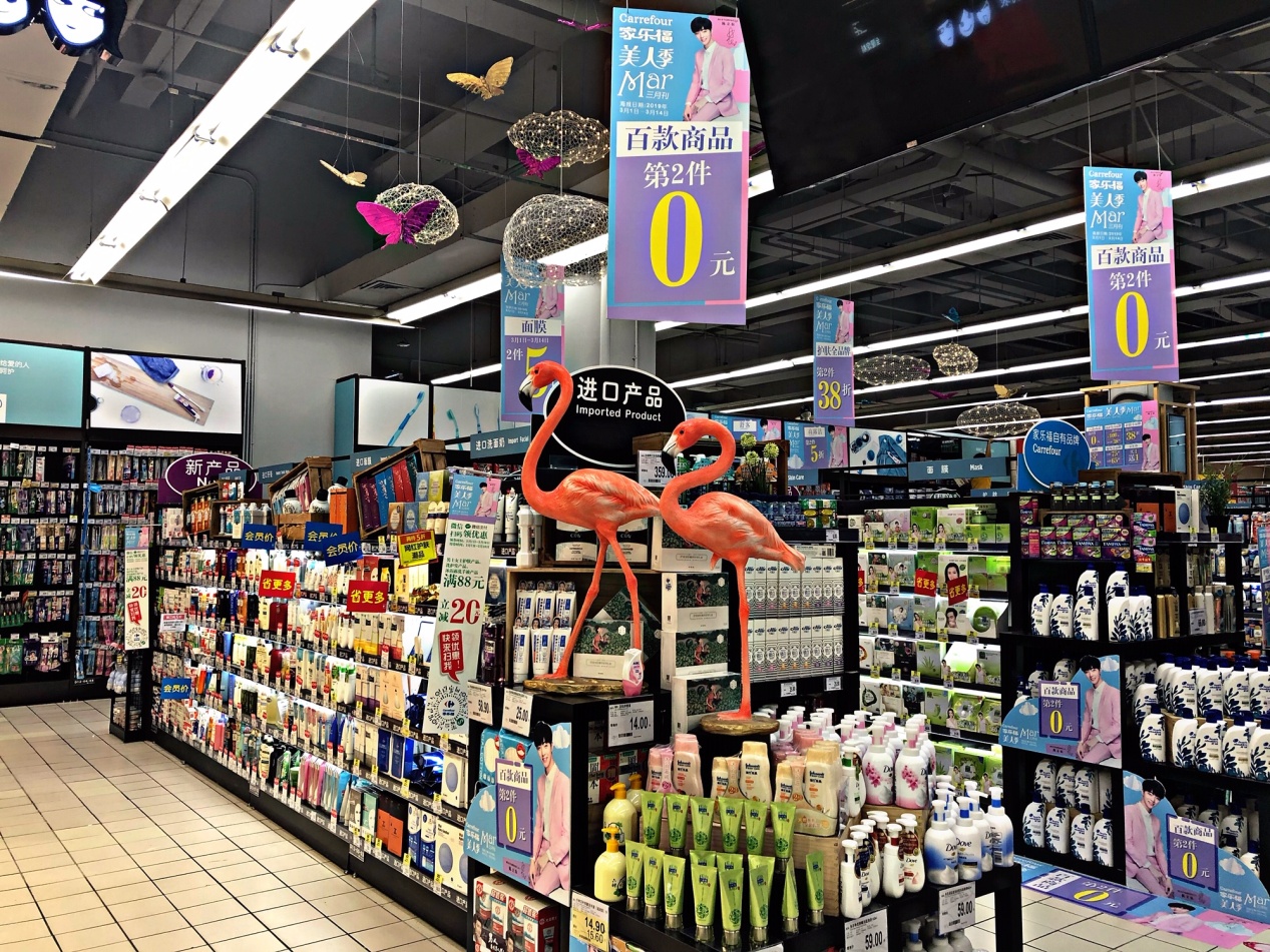 在3·8美人季,家樂福的個(gè)護(hù)、美妝等區(qū)域更是將精致時(shí)尚氣息展現(xiàn)到極致。日韓品牌及進(jìn)口的網(wǎng)紅商品甚至能占到一排貨架。而這部分新品潮物,通常在年輕人中美譽(yù)度比較高,天然地帶動(dòng)家樂福品牌形象的年輕化。得益于家樂福全球采購物流鏈上的成熟經(jīng)驗(yàn),進(jìn)口商品在門店已經(jīng)實(shí)現(xiàn)了全品類覆蓋,更是解決了顧客擔(dān)憂各種海購渠道無法獲取正品的消費(fèi)痛點(diǎn)。