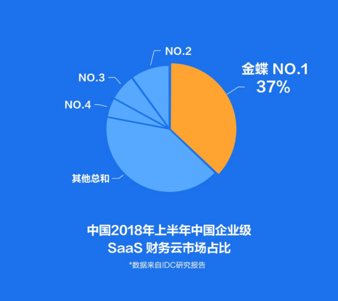 IDC報告披露,2018年上半年中國SaaS廠商銷售收入占比,金蝶繼續(xù)保持第一。