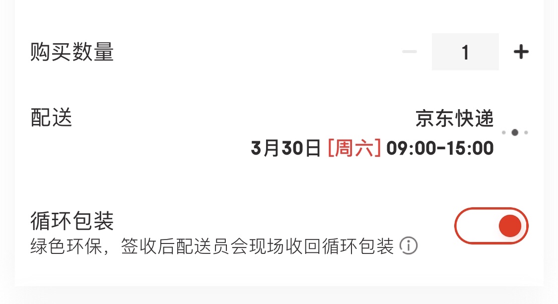 當(dāng)下單頁面出現(xiàn)“循環(huán)包裝”的選擇項(xiàng)時(shí),就說明該商品支持青流箱配送。只要用戶進(jìn)行選擇,即可參與到環(huán)保行動(dòng)中,減少一次性包裝使用,以點(diǎn)滴行為助力綠色可持續(xù)發(fā)展事業(yè)!目前,該活動(dòng)涉及的商品種類數(shù)量達(dá)數(shù)萬個(gè),涵蓋美妝、食品、手機(jī)、網(wǎng)絡(luò)配件、數(shù)碼配件、辦公用品等。