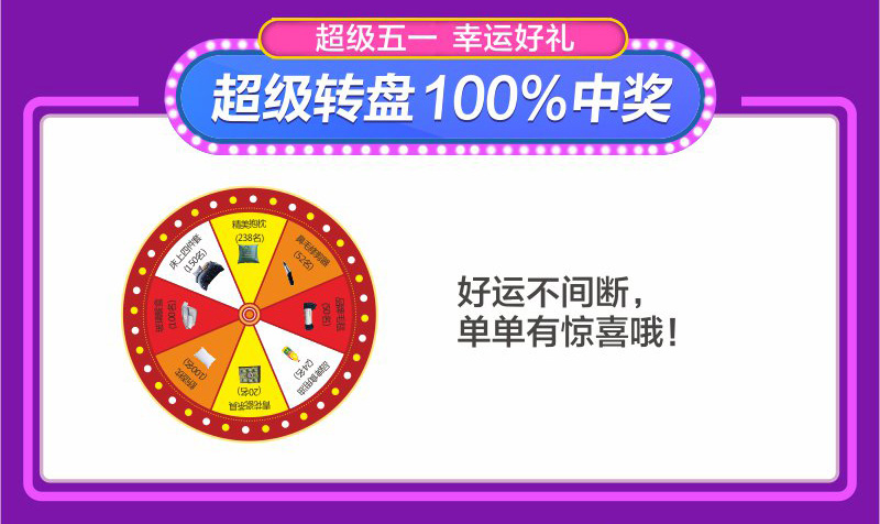 2、超級大轉(zhuǎn)盤,100%中獎:活動期間,顧客憑活動期間的訂單(單筆實(shí)付3000以上)即可參與超級大轉(zhuǎn)盤活動,送完即止!