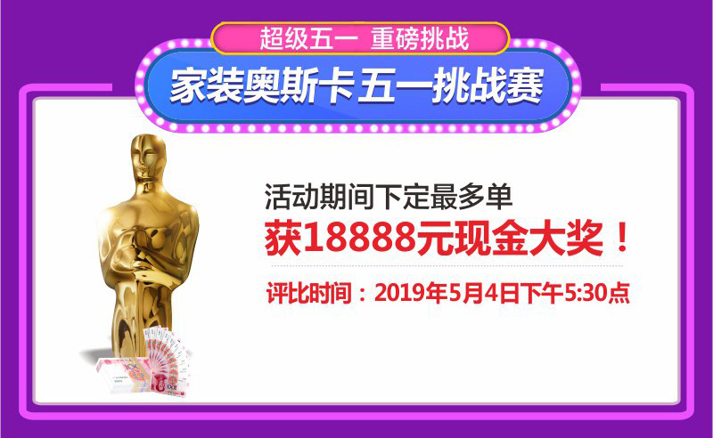6、家裝奧斯卡,五一挑戰(zhàn)賽:4月20日-5月4日活動期間,在店內(nèi)下定最多單數(shù)將獲得本次活動特設(shè)的18888元現(xiàn)金大獎,至少8個品牌,同一品牌算一單,每單須實(shí)付3000元以上。(需繳稅個人所得稅)
